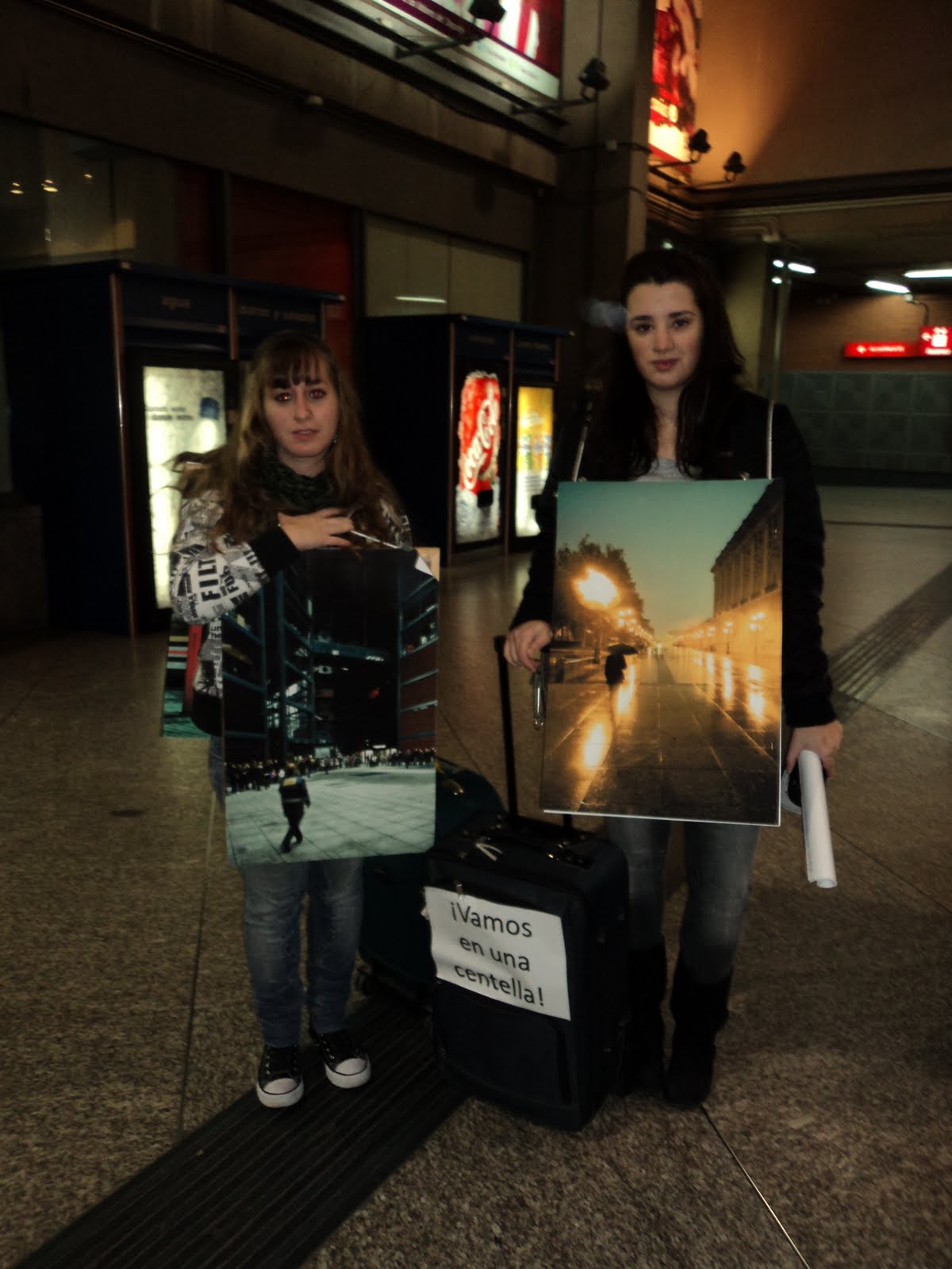 Y eso es exactamente lo que hicimos “llamar la atención”. Por la mañana temprano cogimos fotografías de Madrid, por un lado de RENFE y por otro, vistas de Madrid, además nos acompañaban diferentes tipos de música en altavoces.